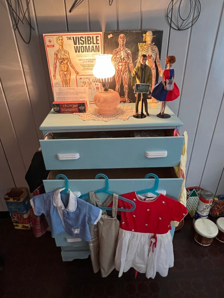 Vintage science sets and clothing were on display in the Children’s room