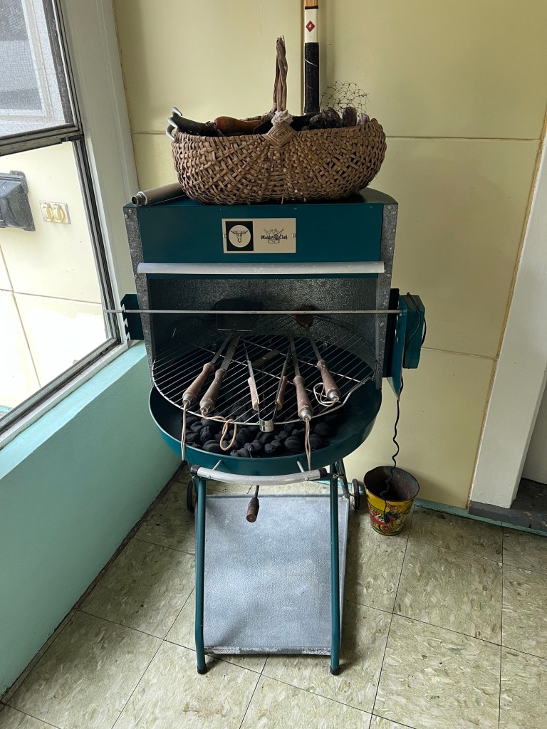 The barbecue grill in the breezeway