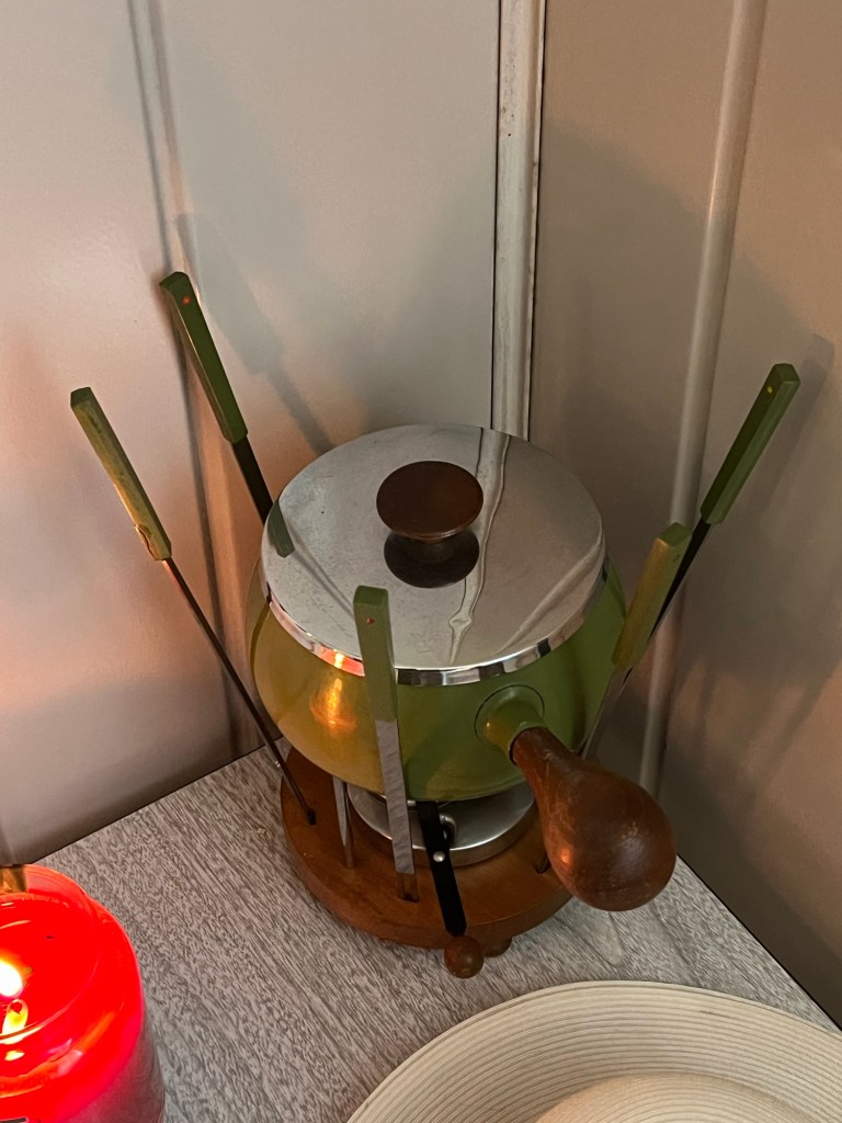 The fondue pot in the corner