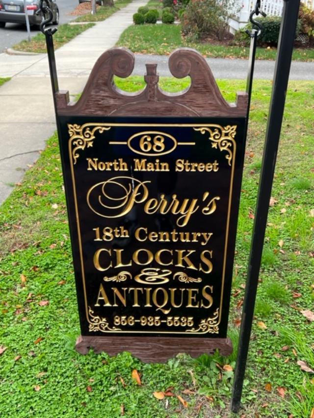 The sign of the clock repair and antique shop business inside the house