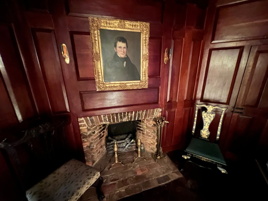 In the back of the Grand Reception room is the Keeping of Family Room where things were less formal. The room had been set up for Christmas. In the Keeping Room is the portrait of Samuel Shivers, John Shivers son above the fireplace.