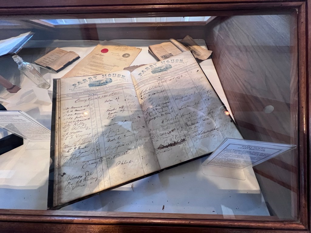 The historic ledger from the Parry Hotel