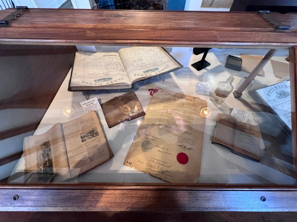 On the second floor of the library is the history room of the Beach Haven Library that contains a collection of historic artifacts and ledgers from hotels and businesses on the island. Each of the case lines tells a different story of the community from the grand hotels that once lined the shore and have since disappeared to the lives of the families that once called the island home. When I talked with one of the librarians, she told me that estates from the area donate these items to the library and this has established their collection.