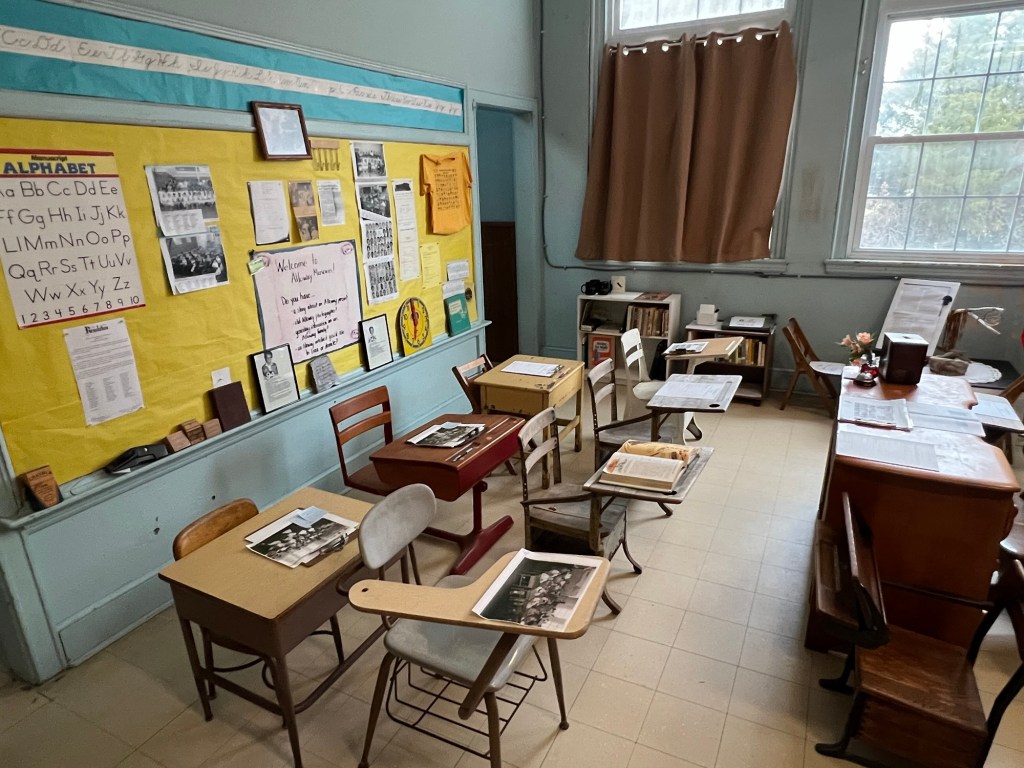The museum is also dedicated to the West Milford school system. Their first display is a replication of an old schoolhouse, which has not changed too much in form. Desks still face the chalk board and the teacher still leads the class.