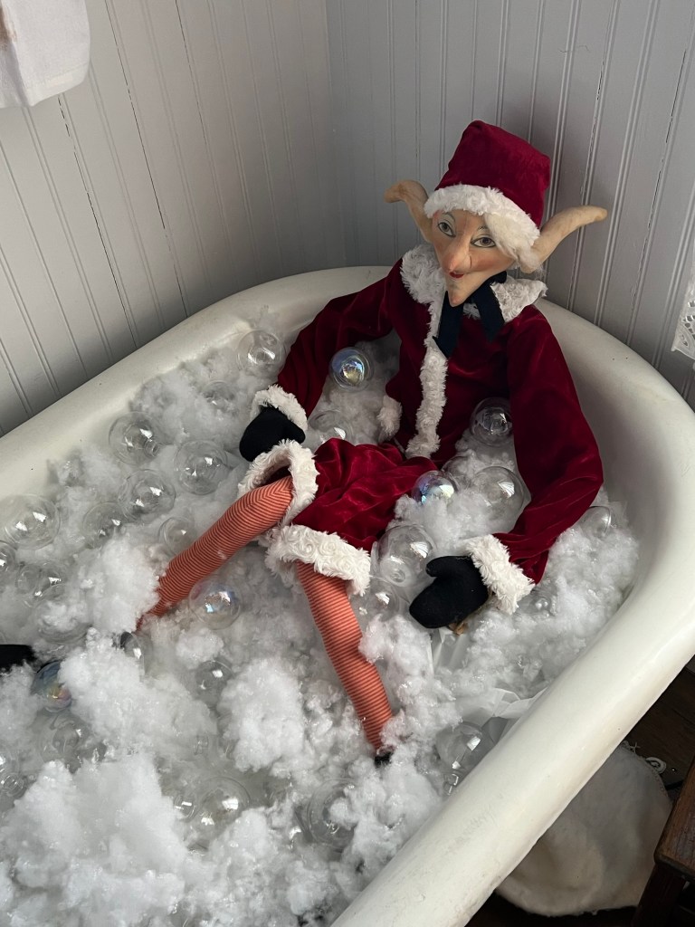 I thought this was quite unique was to see an elf in the bathtub of the upstairs bathroom. This little guy amused many visitors when he was just laying there in the tub with a smile on his face.