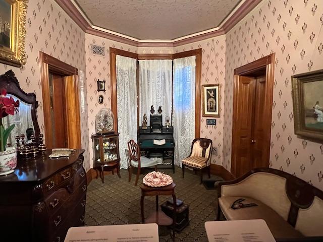 The tour took us next upstairs to see the renovated bedrooms on the second floor and the galleries where some of the jewelry and art objects were on display.