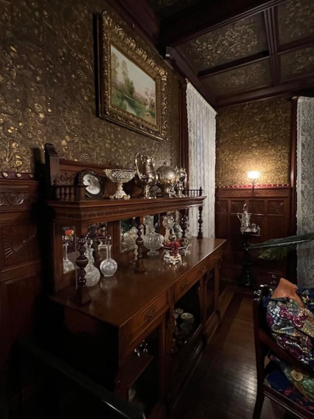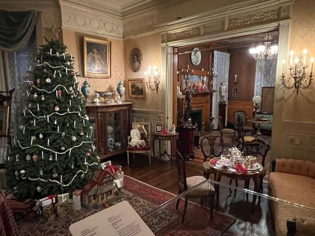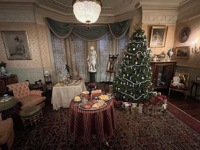 The Parlor would have been set for a light reception on Christmas Eve for the neighbors in the immediate neighborhood to stop in and join the family for a casual conversation and have a light snack. No one would stay more than an hour and it was in bad manners to stay longer than that.