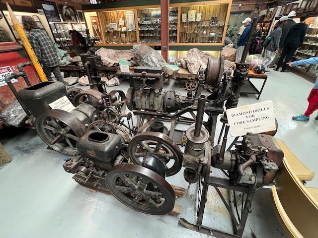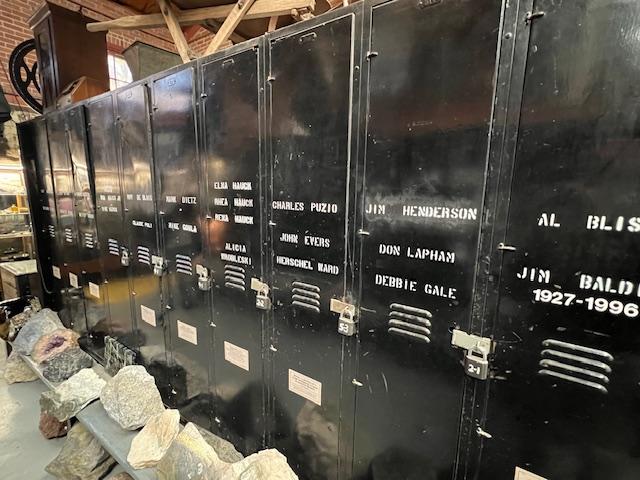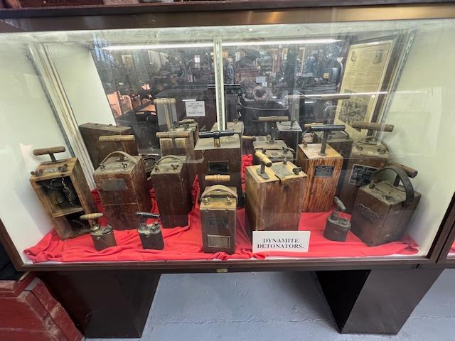 Arriving late for the tour, I started in the downstairs museum section which has the original lockers for the miners and their daily equipment, specimens of minerals and ores that have been found in the mine and elsewhere in the country. There are Native American artifacts and fossils of dinosaur tracks, bones and fragments of sea life. There are also many antiques from the Victorian age to the 1960’s to look at and items like detonators to show the items used to do the mining.