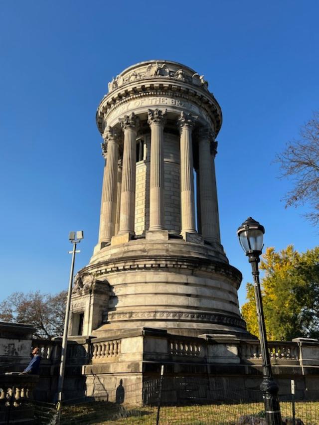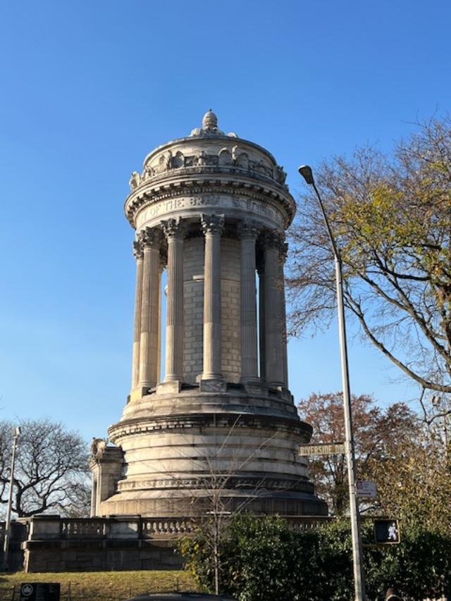I walked all around the monument while walking Riverside Park thinking it was a small copy of a Greek Temple or another smaller burial site like Grant’s Tomb. You could see where the gaps in the structure were and the need for repair from the stairs to the platform. Still there is a beauty in its details.