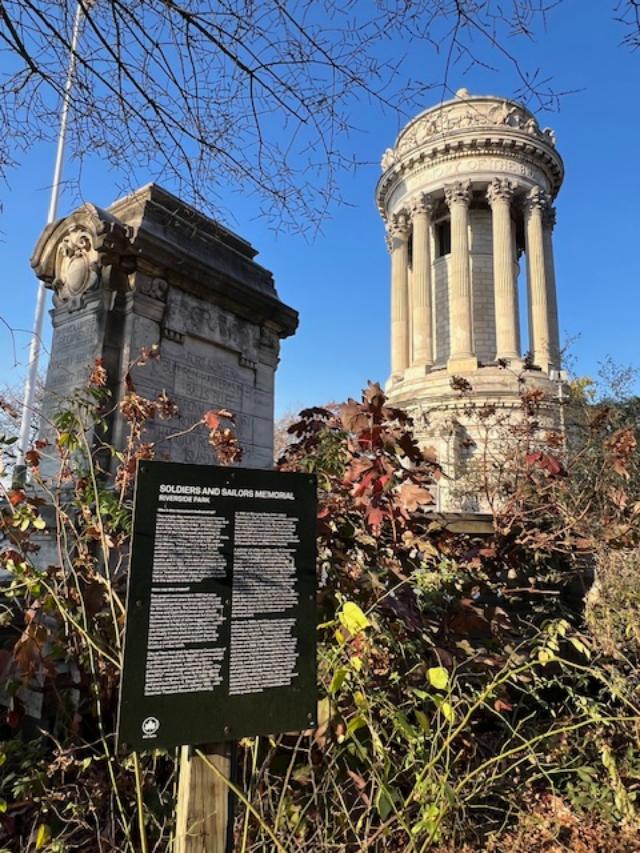 Still it graces the entrance of Riverside Park with it’s beauty. Look at its details in the carvings and it look of a Greek temple. It is really impressive especially in the summer months with the park behind it in full display. You can’t get too close to the monument in its current state.