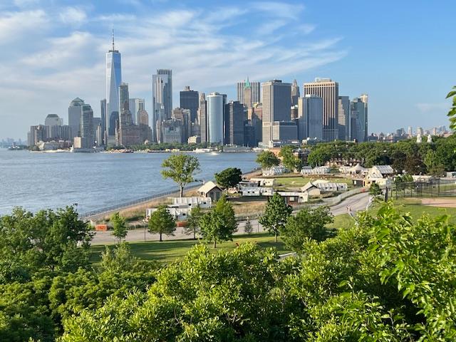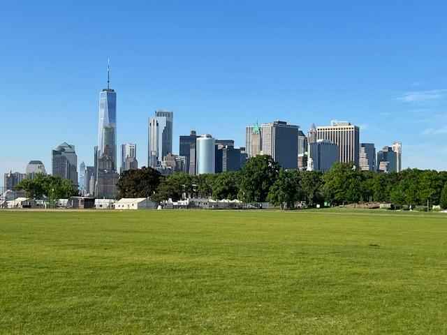 The lawn of Governor’s Island overlooking Lower Manhattan.