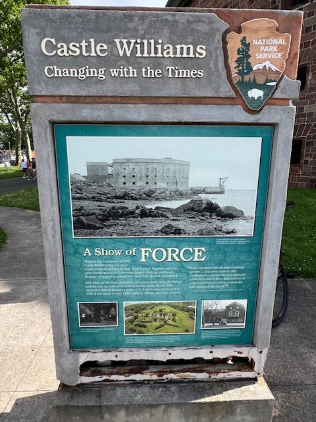 I have toured Castle Williams several times when visiting Governors Island over the last two years. The fort sits at a strategic site on the island facing Manhattan. The fort was originally built to protect New York City from the British during the War of 1812. The British knowing that the City had been fortified for battle never attacked New York.