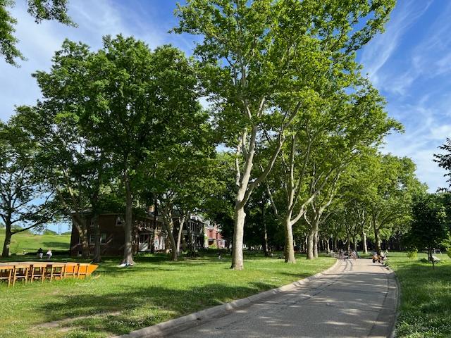 The lawn on Governor’s Island overlooking Lower Manhattan.