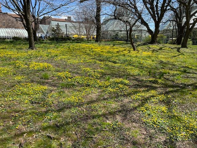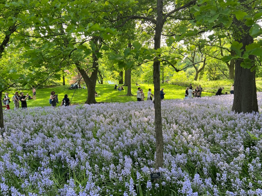 On a recent trip to the Gardens in 2024, the Garden was ablaze with the colors of almost a thousand purple crocuses that lined the hills on the Prospect Park side of the lawns. Beautiful purple and while colors were in full bloom and Mother Nature shined in the COVID era with all of us socially distanced but still enjoying the park.