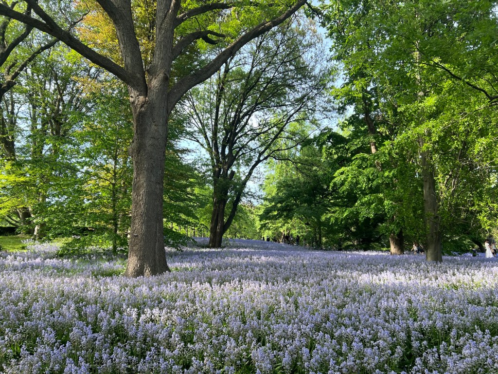 In 2022, the fluffy cherry blossoms were in full bloom, like a graceful wish. When I went to visit them in early May, they were in full bloom and all the paths in the main garden were awash with pink and green. With the lawn being a deep green, the effect was really beautiful, and people were all over the place taking pictures and smelling the flowers. This was the same at the height of their blooming in 2024.