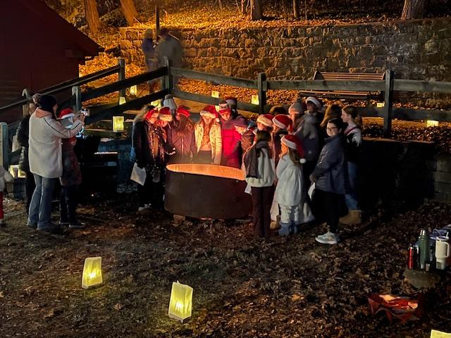 While we were walking through “Trout Pass” during the tour. a group of school children performed Christmas songs by a large fire. I felt for these kids as it was getting colder outside.