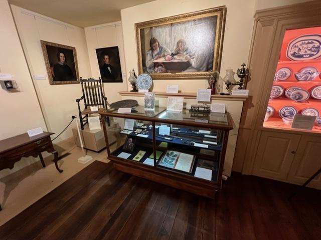 We started in the front room with a display of Revolutionary War memorabilia. Here you will see a ring with a lock of George Washington’s hair, the shoe buckles of General William Hancock, who was a prominent resident of the town who fought in the Revolutionary war.