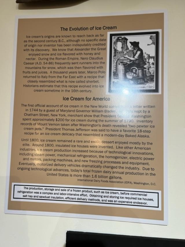 In another room was a display of early ice cream manufacturing including the delivery buckets and carts.