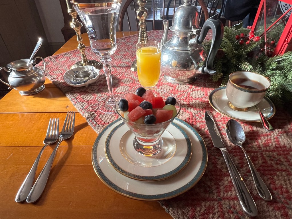 The breakfasts at the Barrett’s Plantation are always wonderful. In the warm and inviting breakfast room, warm fire was going and the table was set for us with juice, fresh fruit and tea. For breakfast with the fresh fruit was Amish Honey Bread and Sunday Casserole with a side of potatoes. What a wonderful way to start the day.