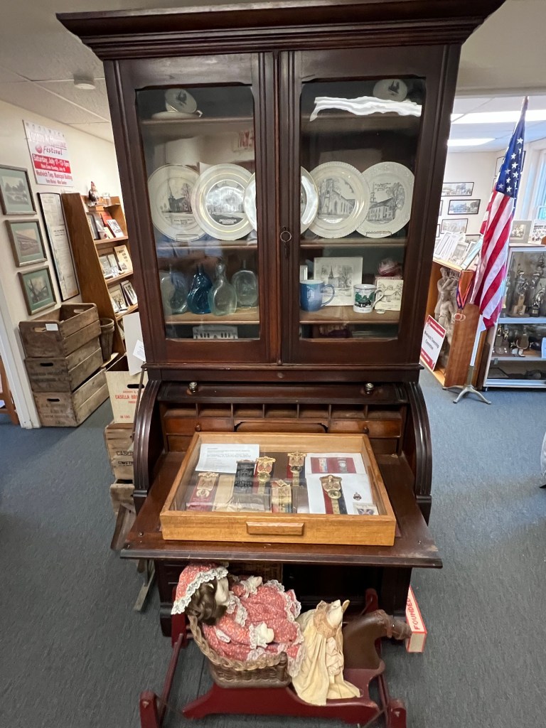 Historic China inside the Emily Lloyd Wilson Secretarial desk. Her father designed the Baldwin Hotel in Beach Haven.