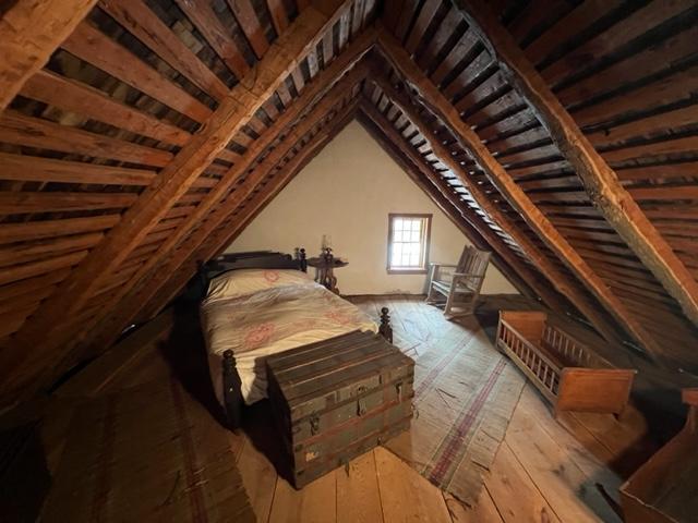 The main house is very unique. The addition to the house was built in the mid 1800’s and is furnished from that time period. This was added to the log cabin that has been reconstructed on the site. The early parts of the log cabin date back to before the Revolutionary War.