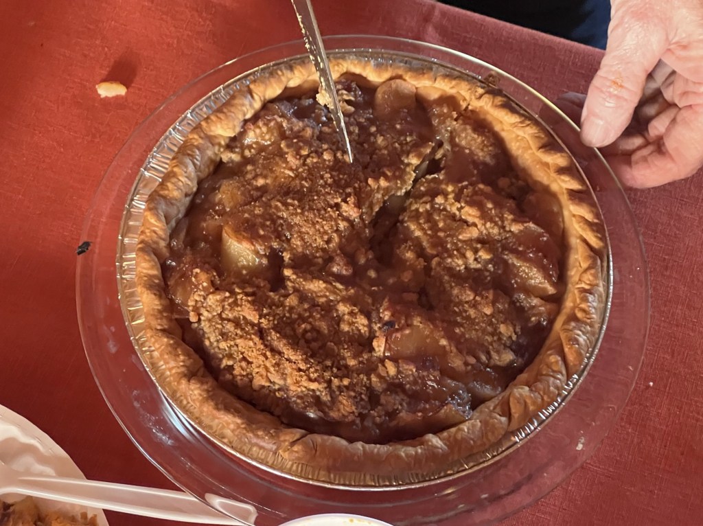 It was interesting how the pies were cooked in the cast iron equipment and then laid out to cool. They came out of the oven steaming hot and sat to cool before being sliced.
