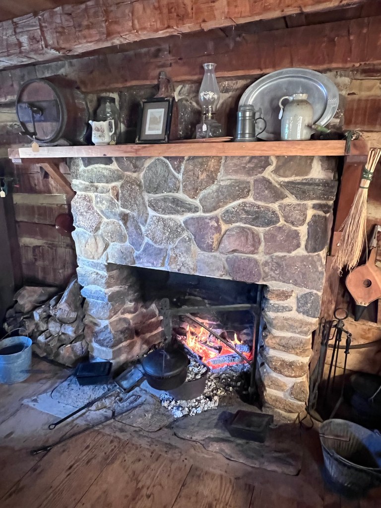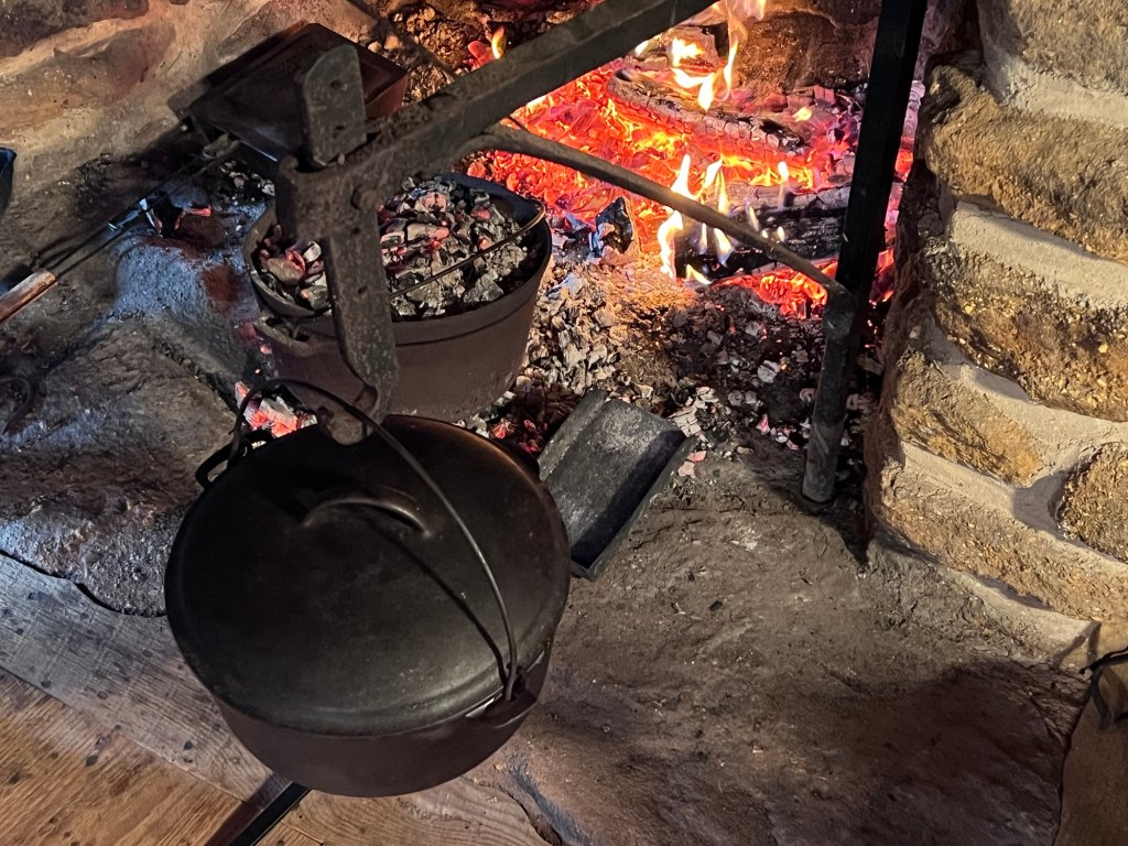 There is nothing better than a freshly baked pie in a fireplace. In November 2025, I returned to the museum for ‘Pie Day’. There were various pies, chestnuts and soup being cooked in the log cabin fire place that afternoon. It was interesting to see cooking procedures from a hundred years ago.