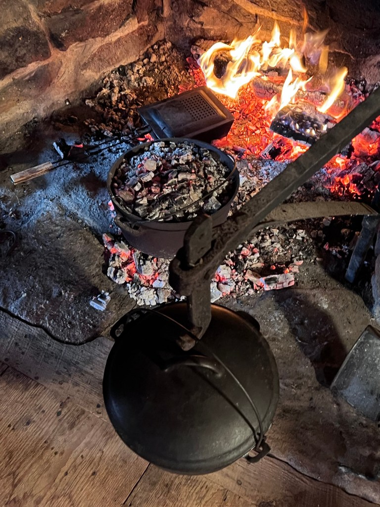 The pies, Chestnuts and soups being cooked in the Open Hearth