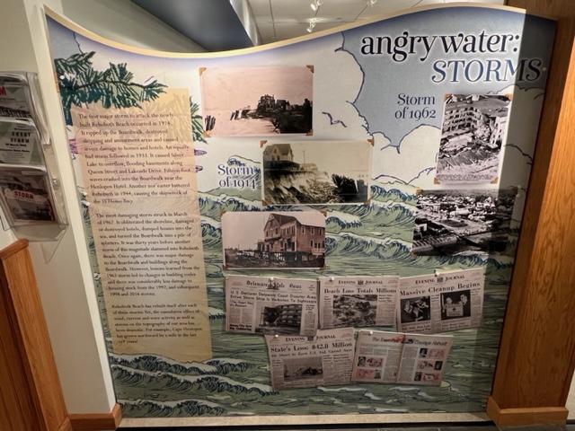 A recent exhibition showed the disastrous “1962 Nor’easter” that destroyed most of the shoreline, all the boardwalk businesses including the Boardwalk and how the town rebuilt quickly to open by Memorial Day that year. Anything that had been along the coastline had been destroyed in this three day period in March of 1962. The Boardwalk looked like matchsticks.
