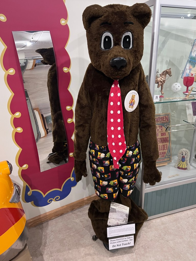 Carlton Clothing had been downtown since the 1960’s and they donated a lot of items to the collection. The bear costume was a promotional prop for the holiday season that Carlton’s used for families.