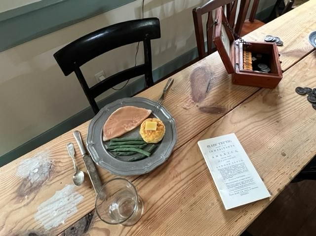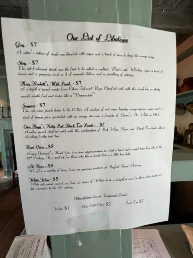 The Sussex Tavern is a recreation of a tavern in the 1700’s complete with a bar area, dining tables with food and menus of the items that could be ordered. The tavern was the focal point for travelers and locals alike to share a meal, ideas and politics. It was the center point for most communities.