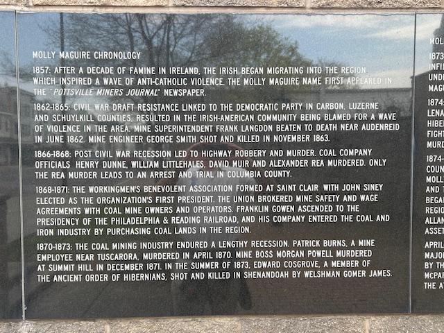 The historic plaques tell the story of who the Molly Maguire were and their lasting effects on the changing of mining conditions.