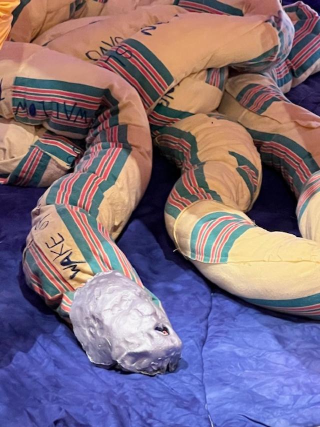 The Gallery is full with Alumni and student art and it revolves at various times of the year. It is a nice size gallery full of interesting art. There was a combination of sculpture, painting and paper sculpture in the gallery.