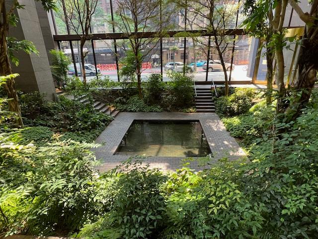 It was also nice to walk around the building to see the indoor gardens and pools that are located in the lobby area of the building. The building does have a feeling of Ying and Yang. There will be more exhibitions in the Fall.